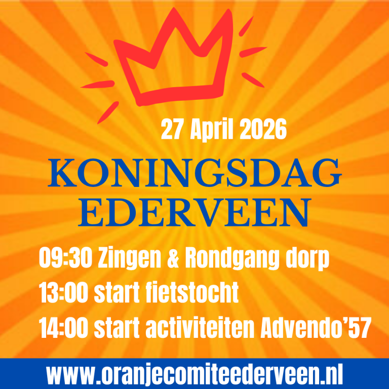 Geef je op via de knop contact onderaan de pagina en vul het contactformulier in. Of stuur een mail naar: penningmeester@oranjecomiteederveen.nl